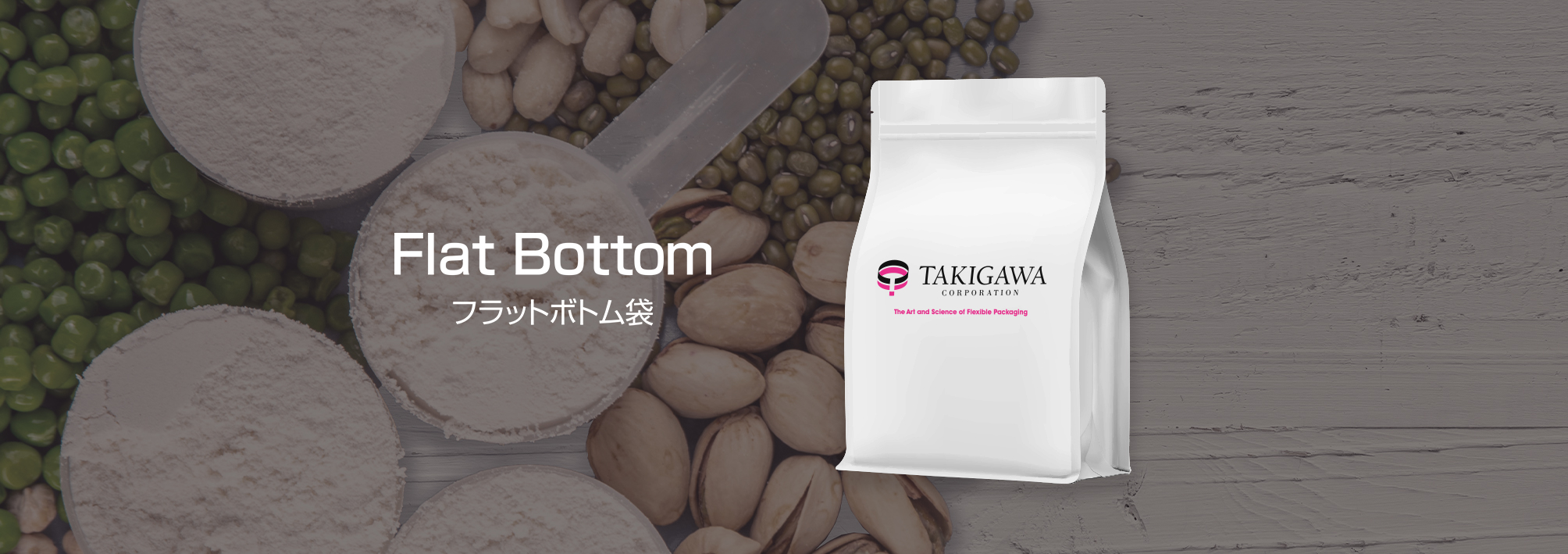 フラットボトムはその名の通り底が平らなサイドガゼット袋です。 従来の袋の中で、最も自立性の高い袋です。